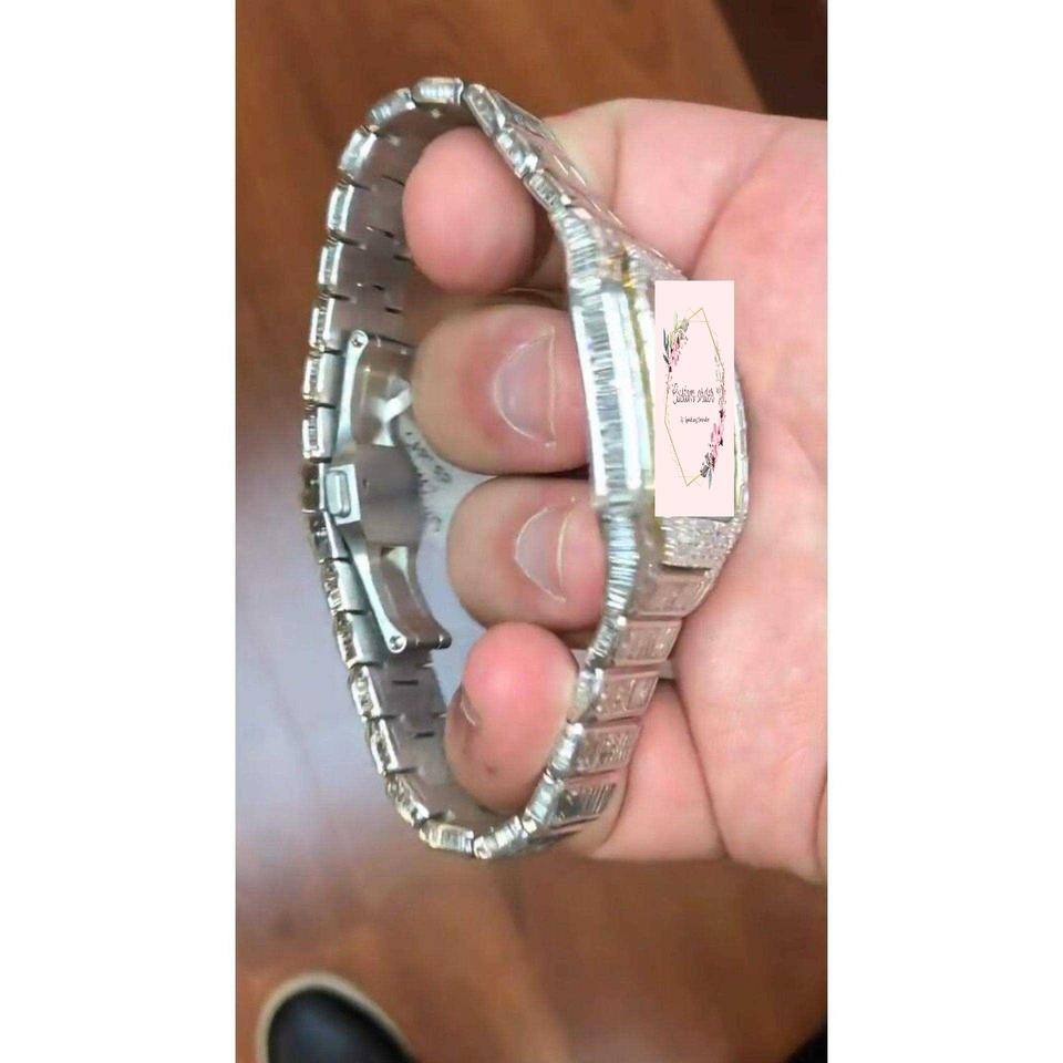 Customize Baguette Cut Moissanite Mechanical Watch for Men Full Iced Premium Branded Quality Automatic 20mm Glass Fashion Gift