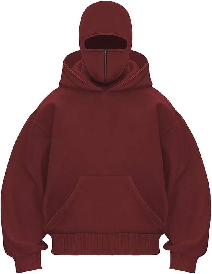 Men's Balaclava Hoodie Half Zipper Jacket Double Hooded Sweatshirt Wind Resistant Athletic Coat