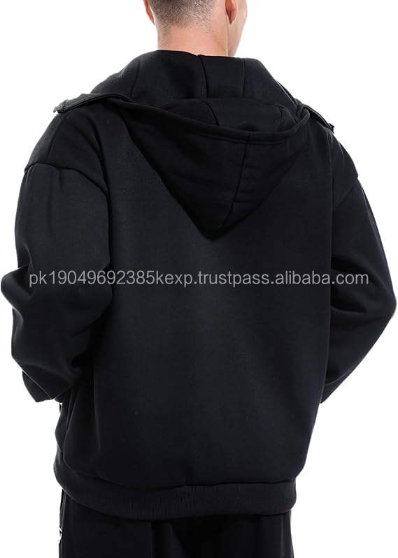 Men's Balaclava Hoodie Winter Double Layer Hooded Sweatshirt with zipper, Fleece-Lined Hip-Hop Hoodie