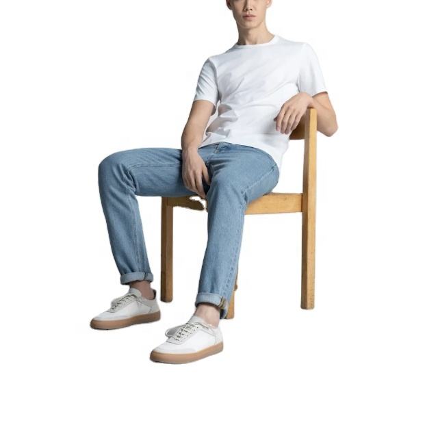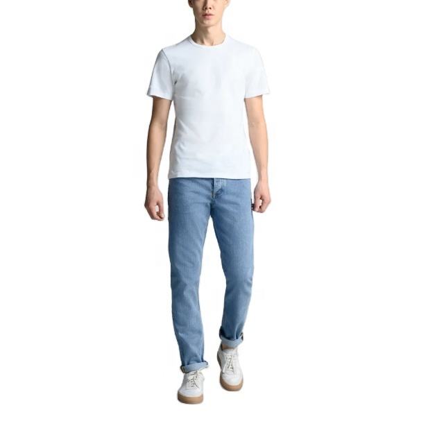 Men's Basic Style Casual Straight Denim Jeans Winter Semi-Elastic Waist Loose Pants Button Semi-Elastic Waist Loose Style Wide
