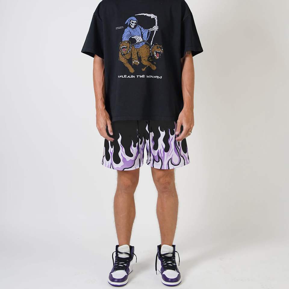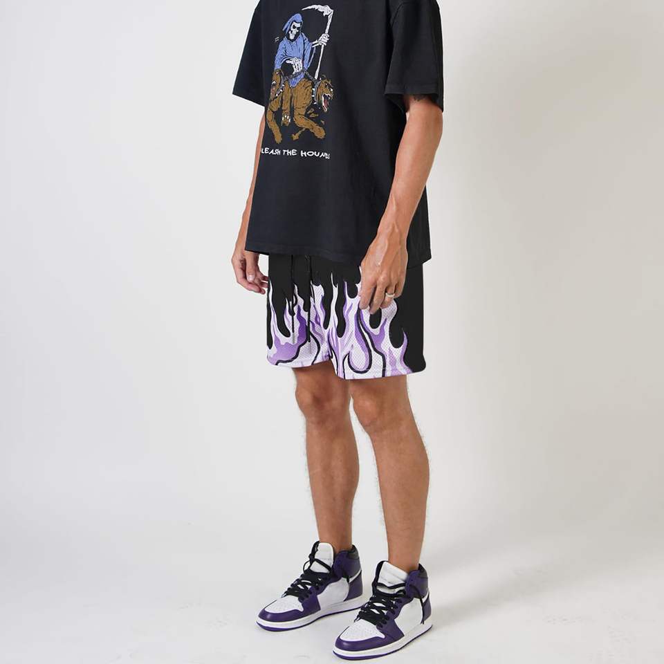 Men's Basketball Shorts Casual Workout Athletic Shorts Mesh Flame Graphic Print Running Short