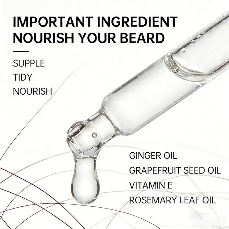 Mens Beard Flourish Oil ODM-Ginger Grapefruit Seed Oil Vitamin E Rosemary Strong Hold Shine Softening Conditioning 30ml