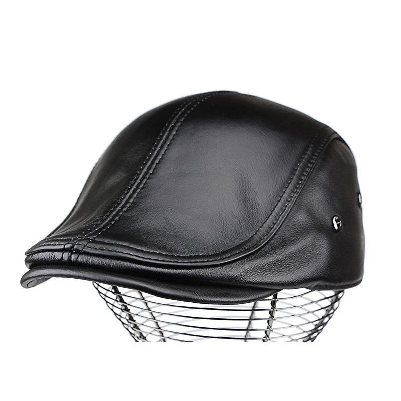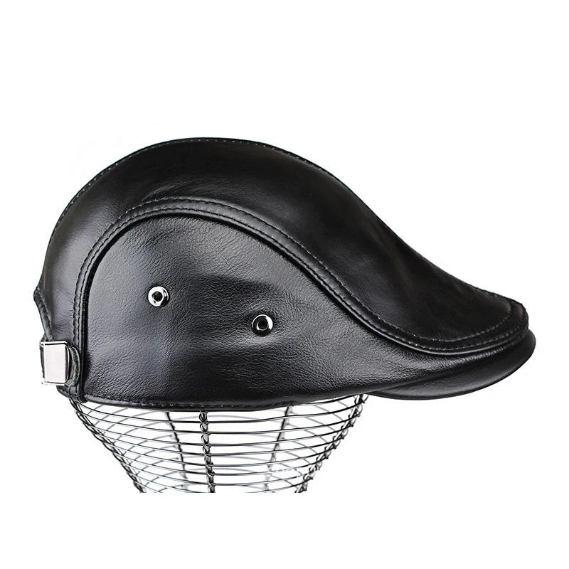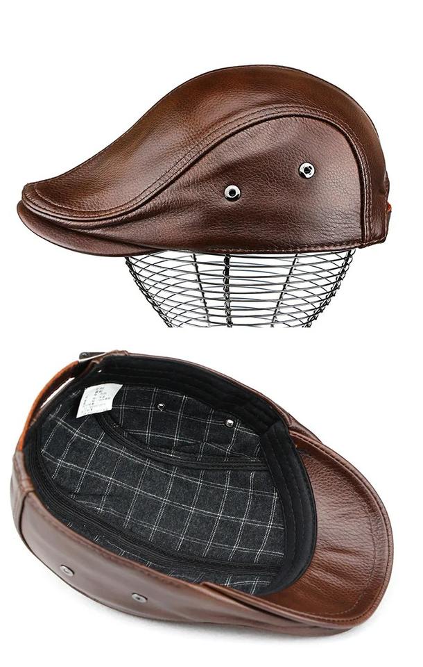 Men's Cowhide Beret Forward Hat Thin Section Leather Duck Tongue Cap with Short Brim Warm Breathable Adjustable for Beach Wear