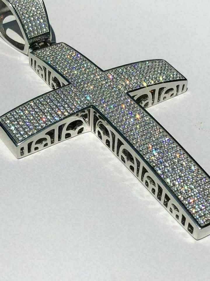 Men's Big 3.25 Solid 925 Sterling Silver Iced Out Cross Pendant, Jesus, Crucifix, Hip Hop Rapper