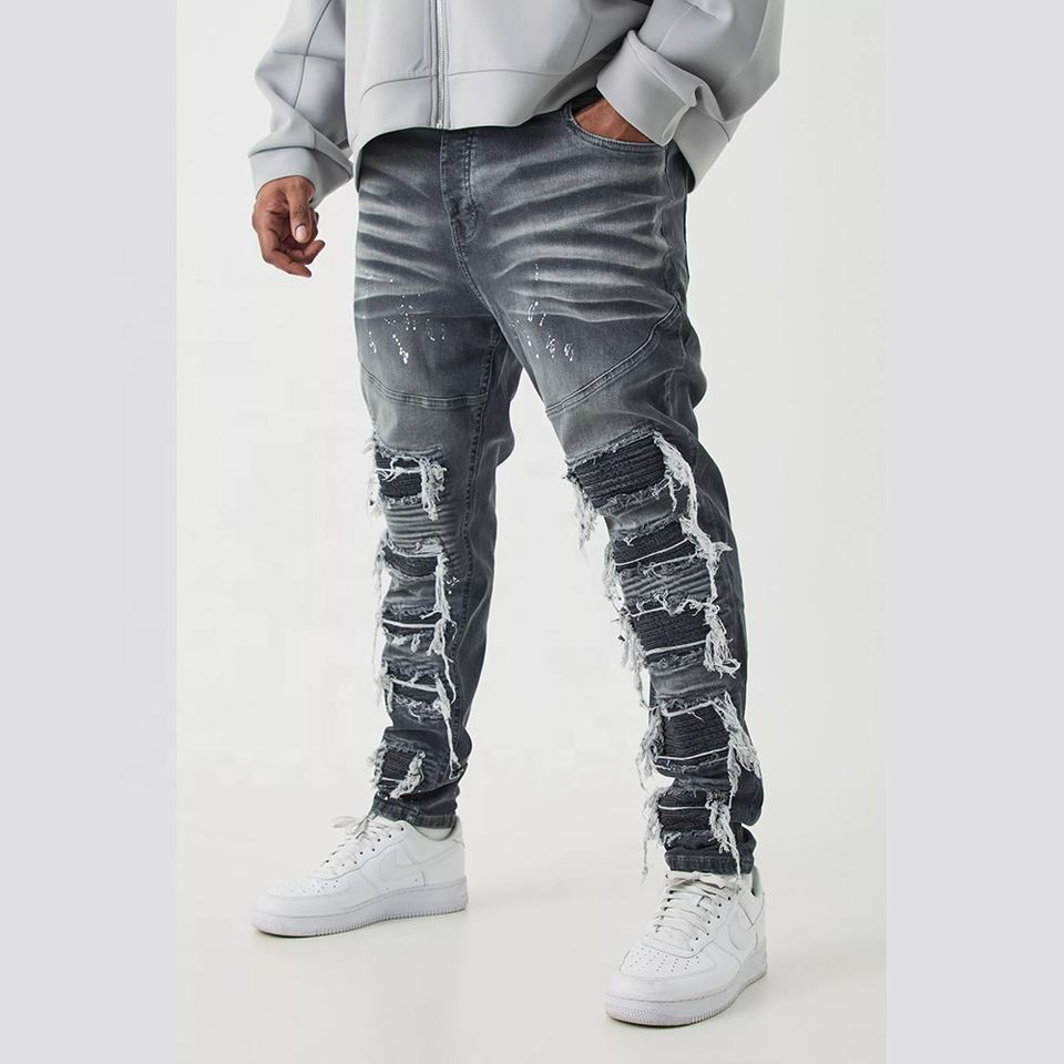Men's Black Baggy Fit Straight Cargo Jeans Wholesale Streetwear Distressed Multi-Pocket Plus Size Available