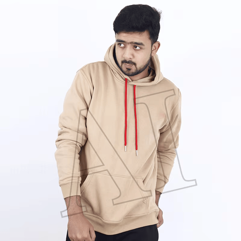 Men's Black Boxy Fleece Hoodie Double-Layer Pocket Thick Cotton Customizable OEM Service for Winter
