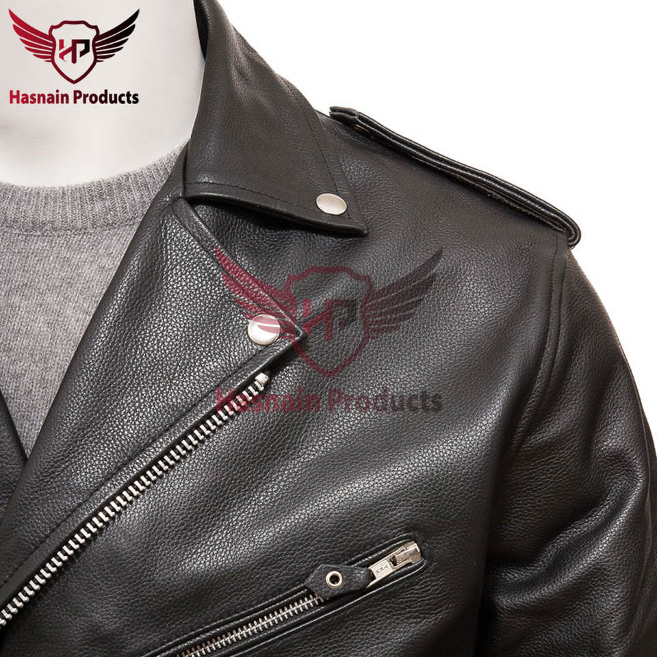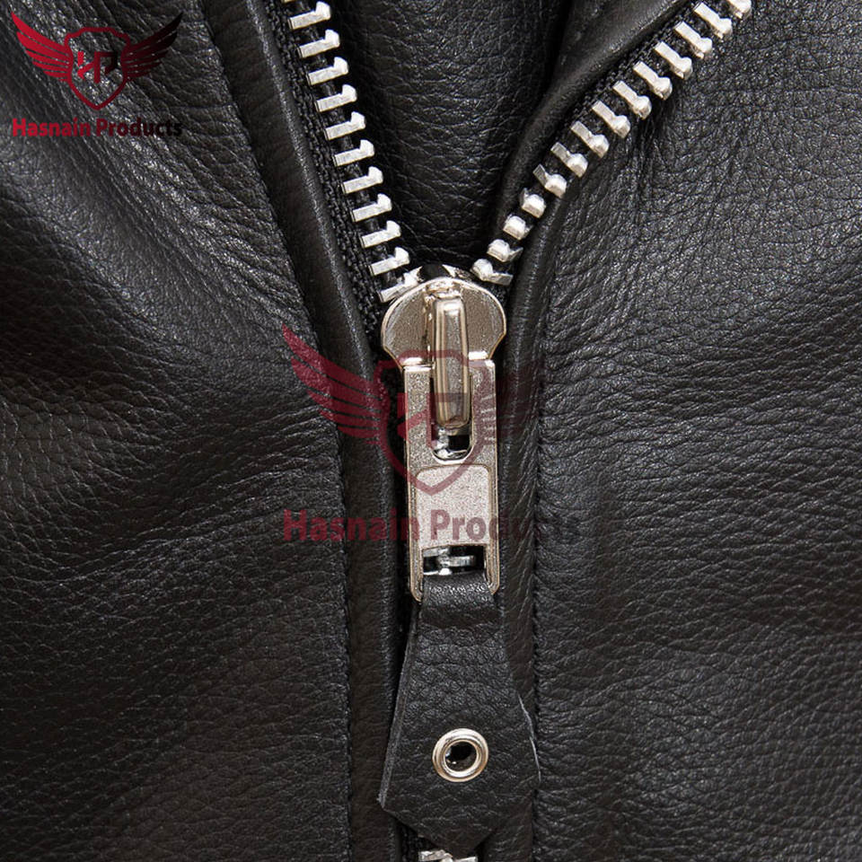 Men's Black Fringe Leather Jacket - Classic Biker Style with Tasselled Fringe - Quilted Satin Lining - Leather Trimmed Pocket
