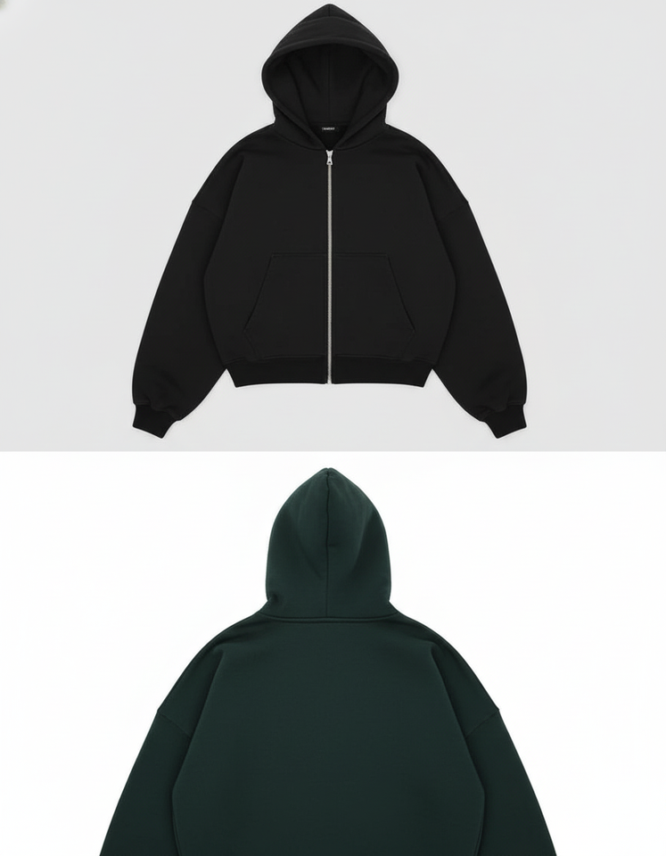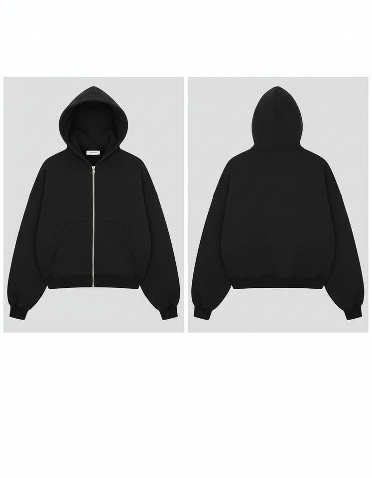 Men's Black Full Zip Hoodie Oversized Hooded Sweatshirt Casual Loose Fit Fleece Jacket with Pockets