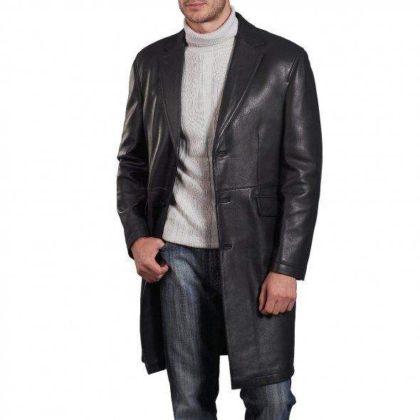 Men's Black Genuine Leather Dress Coat for Winter Autumn | Stylish Leather Coat for Men & Women Winter Clothing for Sale