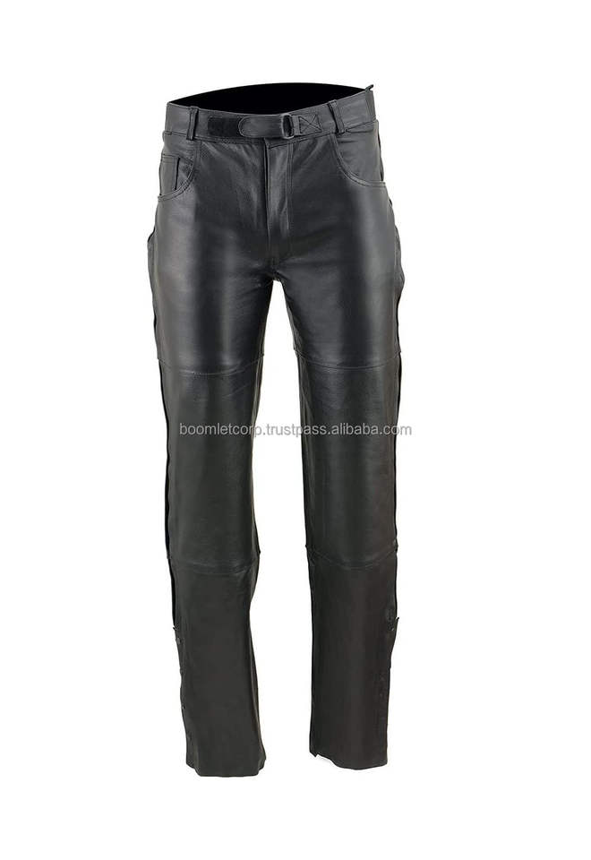 Men's Black Leather Motorcycle Over Pants with Jean Style Pockets Leather Protection Biker Pants by Boomletcorp.