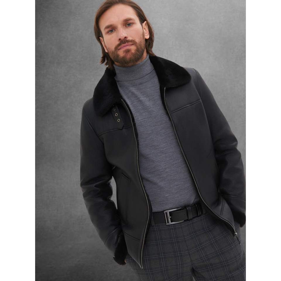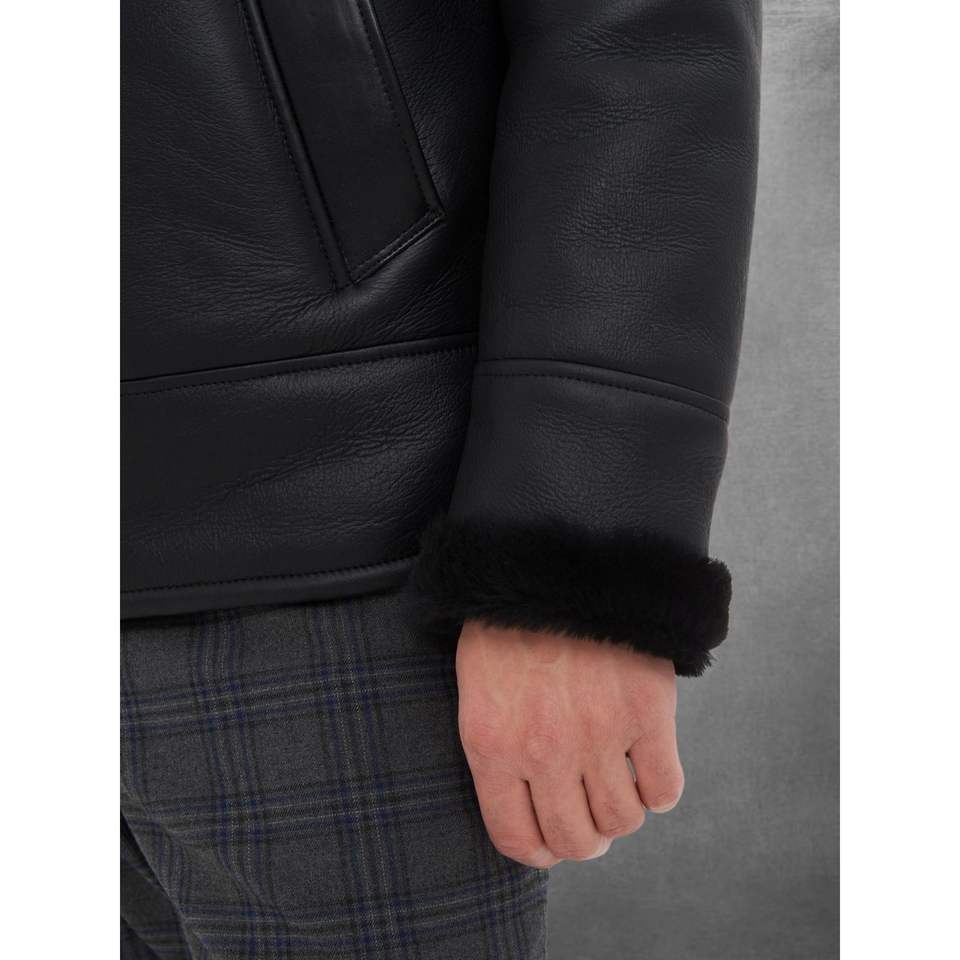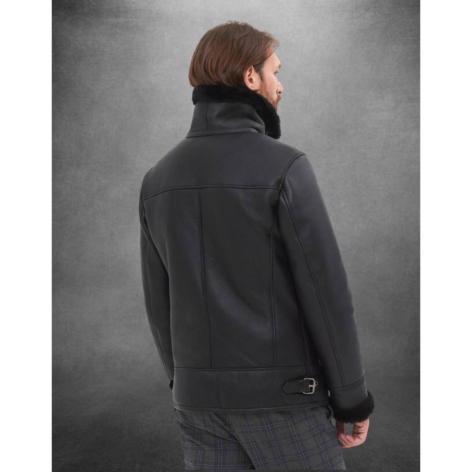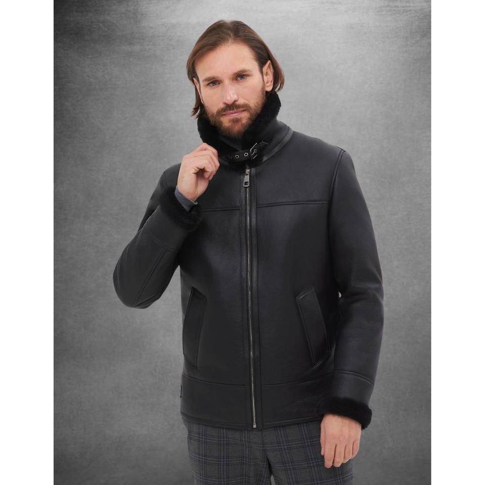 Men's Black Shearling Moto Jacket Genuine Sheepskin Leather Winter Outerwear Custom OEM Sizes XS to XL Wholesale Supplier Turkey