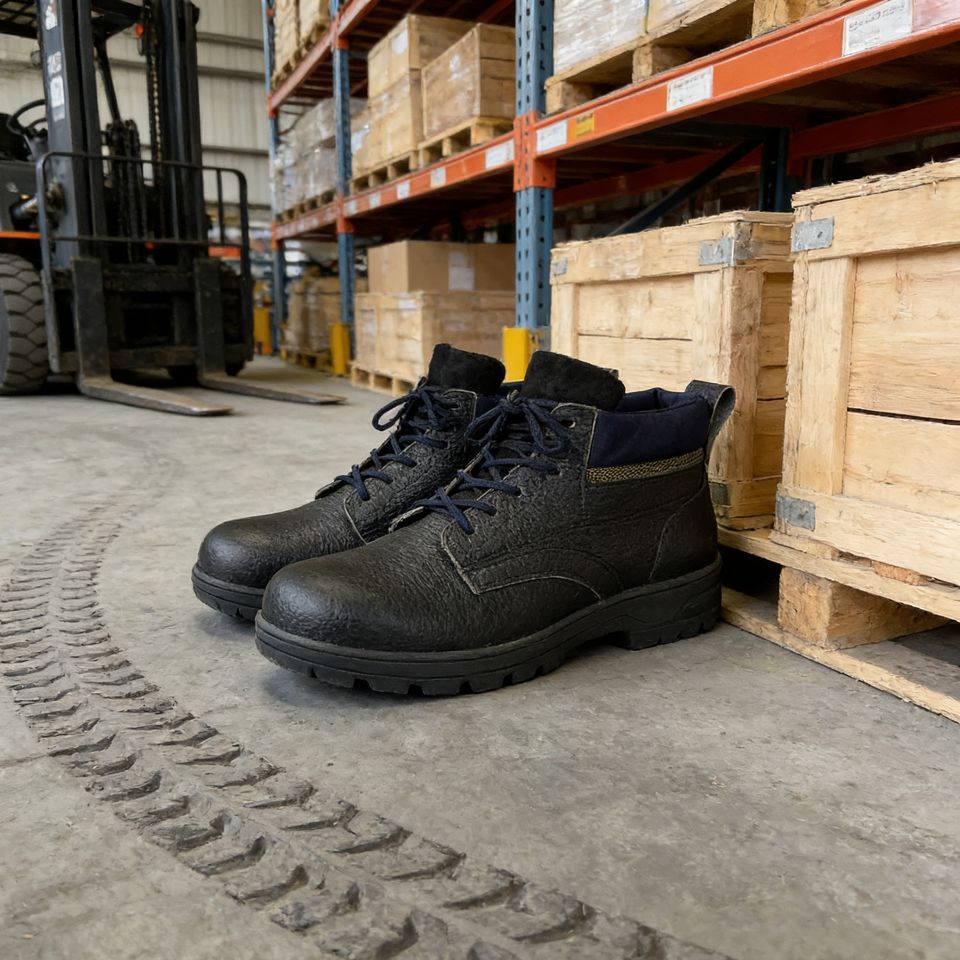 Men's Black Slip-On Square Toe Light Solid Labor Safety Shoes Uganda Durable Leather Industrial Work Stock All Seasons Office