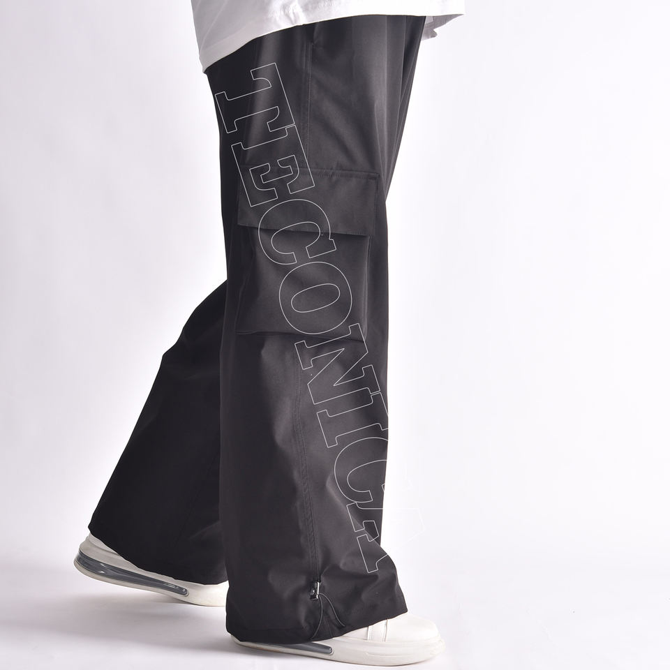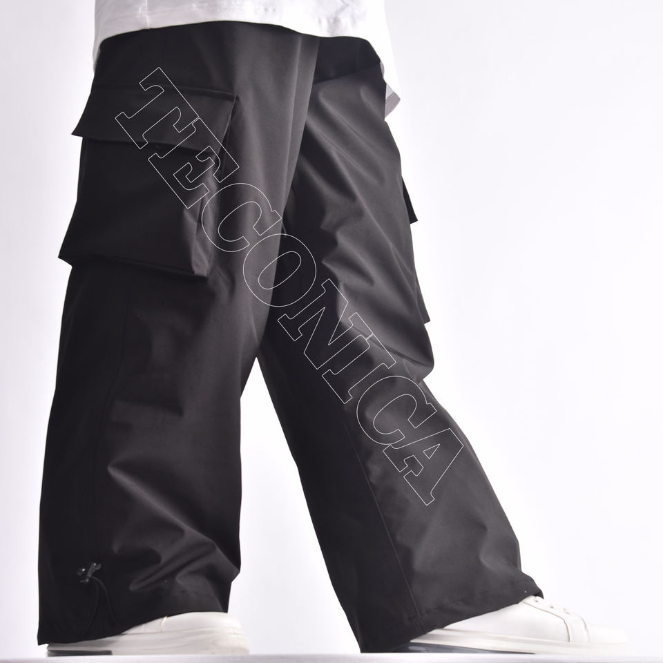 Men's Black Snowboard Cargo Pants with Multiple Pockets Breathable Vent Zippers Drawstring Waist and Waterproof Fabric