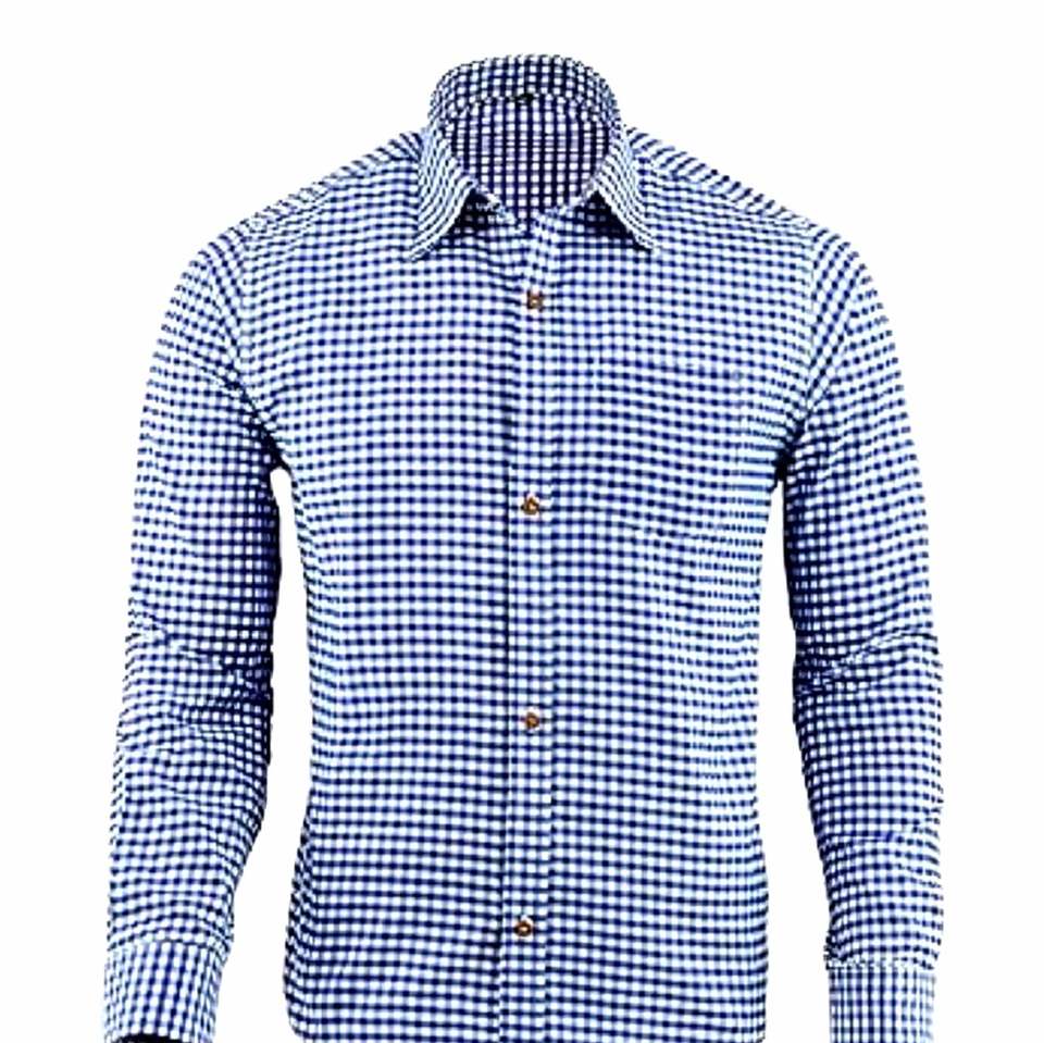 Men’s Blue Bavarian Oktoberfest Trachten Shirt Premium Cotton Traditional German Fit S to 4XL