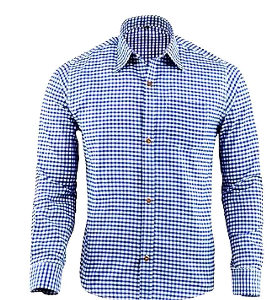 Men’s Blue Bavarian Oktoberfest Trachten Shirt European Cotton Heritage S to 4XL
