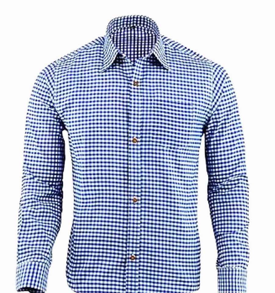 Men’s Blue Bavarian Trachten Oktoberfest Shirt Premium Alpine Cotton S to 4XL
