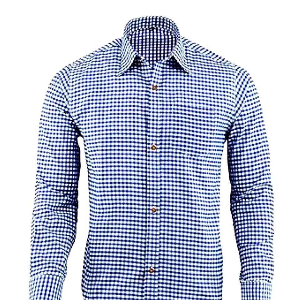 Men’s Blue Bavarian Trachten Shirt Oktoberfest Party Cotton Long Sleeve Traditional German S to 4XL