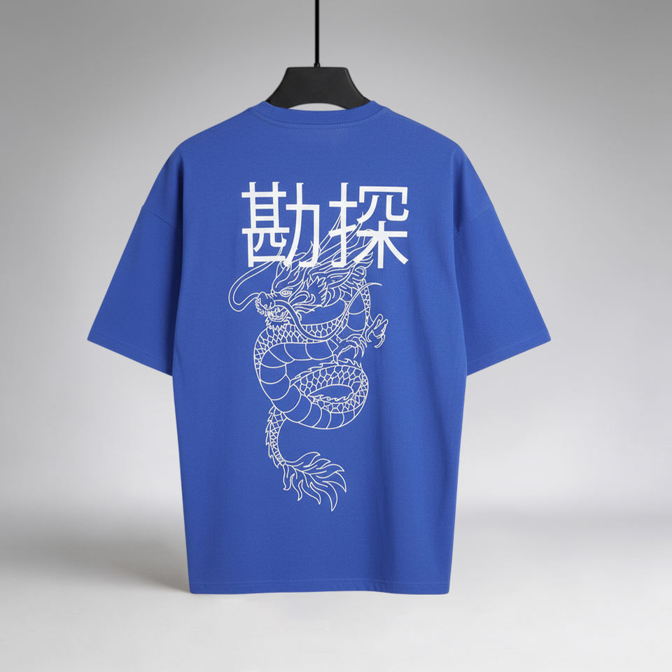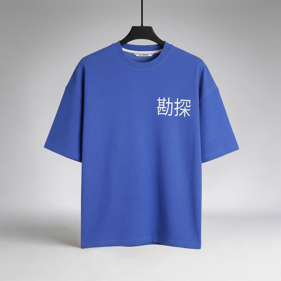 Men’s Blue Oversized Printed T-Shirt 200 GSM 70% Cotton 30% Poly CVC Custom Print