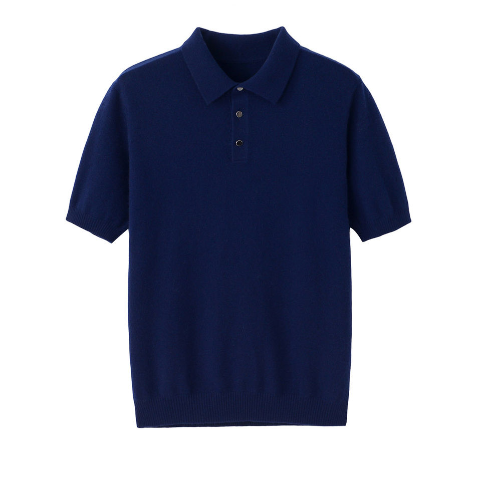 Men's Breathable Anti-Wrinkle 16GG Knitted Oversized for Polo T-Shirt New Pure Worsted Cashmere 260 Dyed Logo Pattern Formal