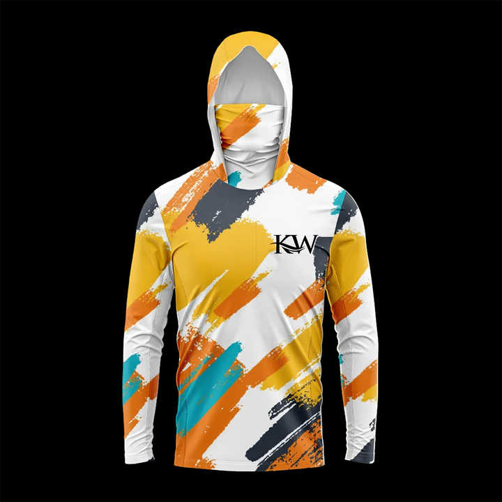 Men's Breathable Hooded Fishing Shirt Moisture Wicking UV Protection with Integrated Face MaskNeck Gaiter for Outdoor Activities