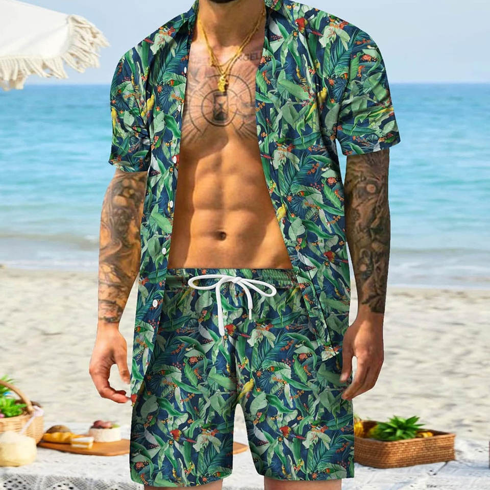 Men's Breathable Shirts shorts set Summer OEM Custom Print New Beach Wear Men's Shorts Set good quality men beach wear