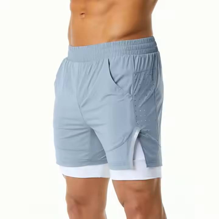 Men's Breathable Training Gym Shorts Smoother Softer Fog Blue Compression Lined Woven 80% Nylon 20% Elastane Front Slip Pockets