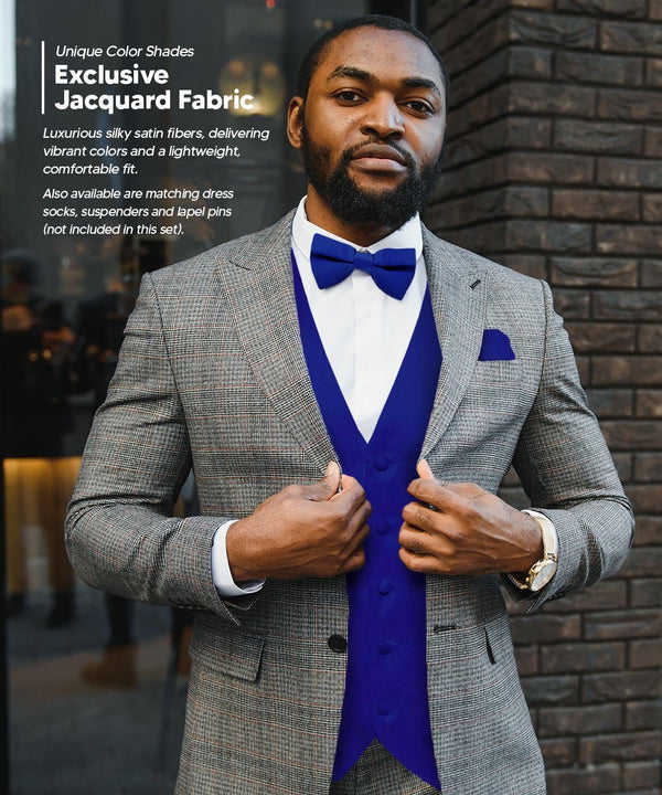 Men's Breathable Windproof Reversible Satin Vest Set with Black Back Includes Necktie Bow Tie Pocket Square OEM Service