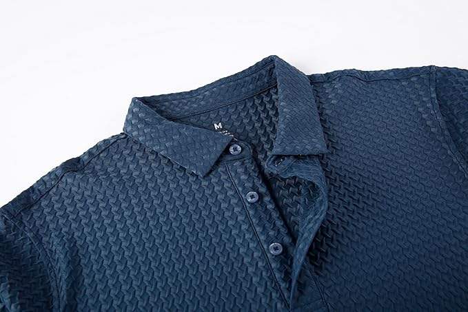 Men's Bubble Jacquard Polo Shirt Super Stretch Short Sleeve Polo Shirts for Men