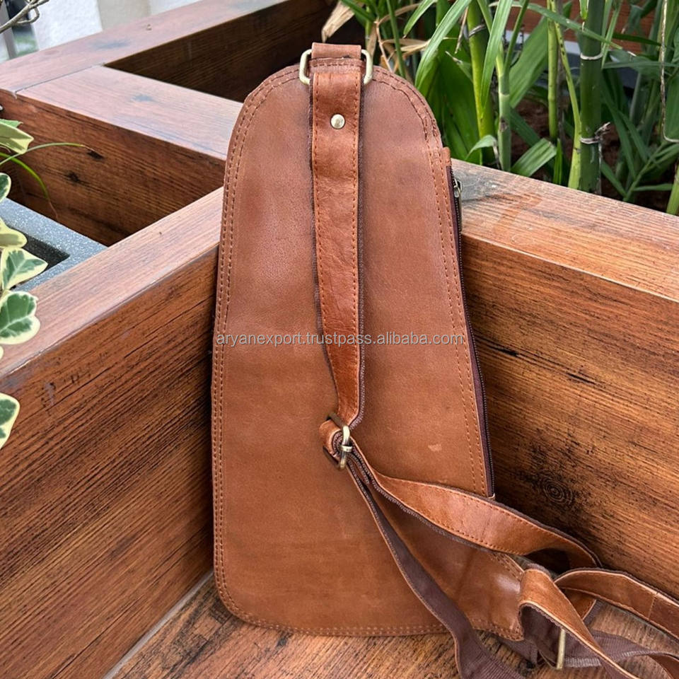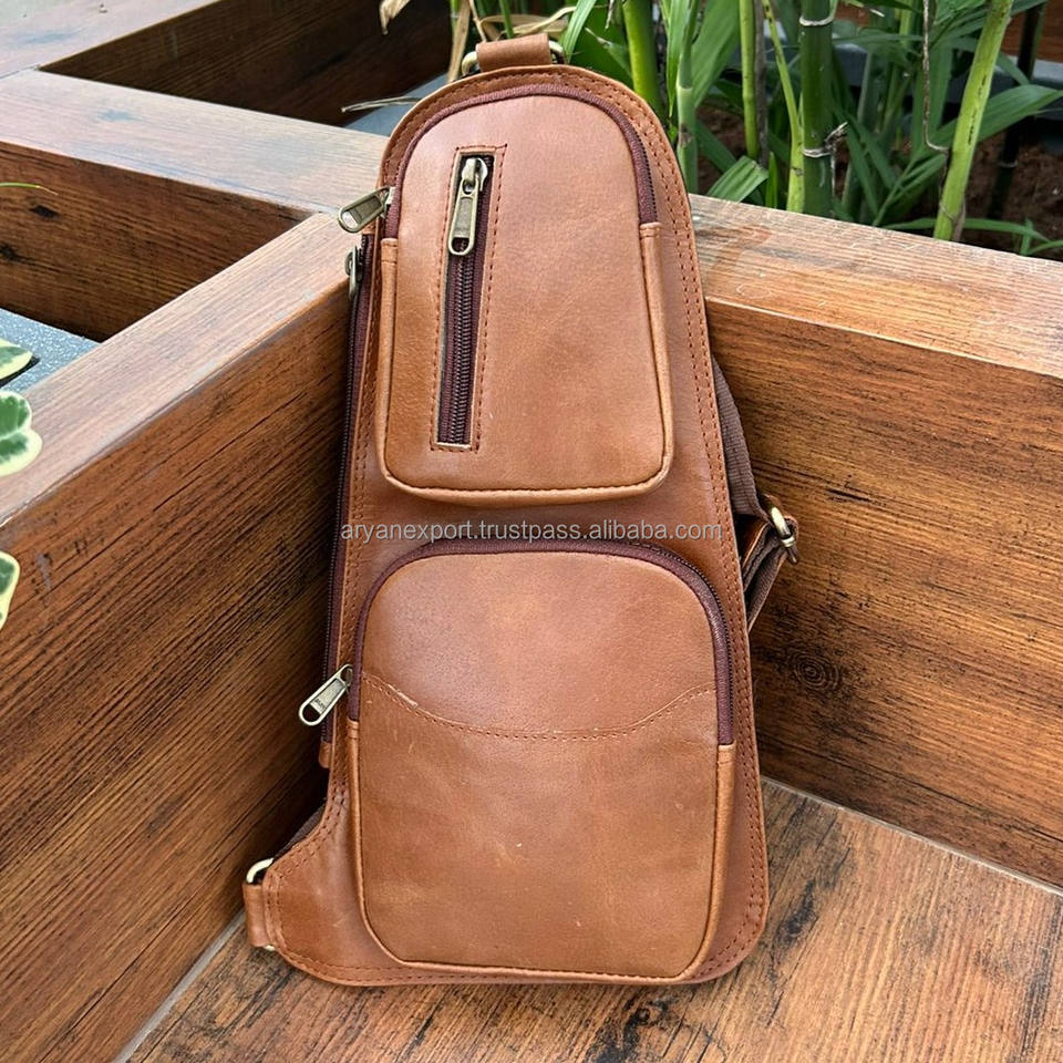 Men's Business Full Grain Genuine Leather Chest Bag Vintage Cowhide Leather Cycling Sports Crossbody Bag Casual Sling Bag