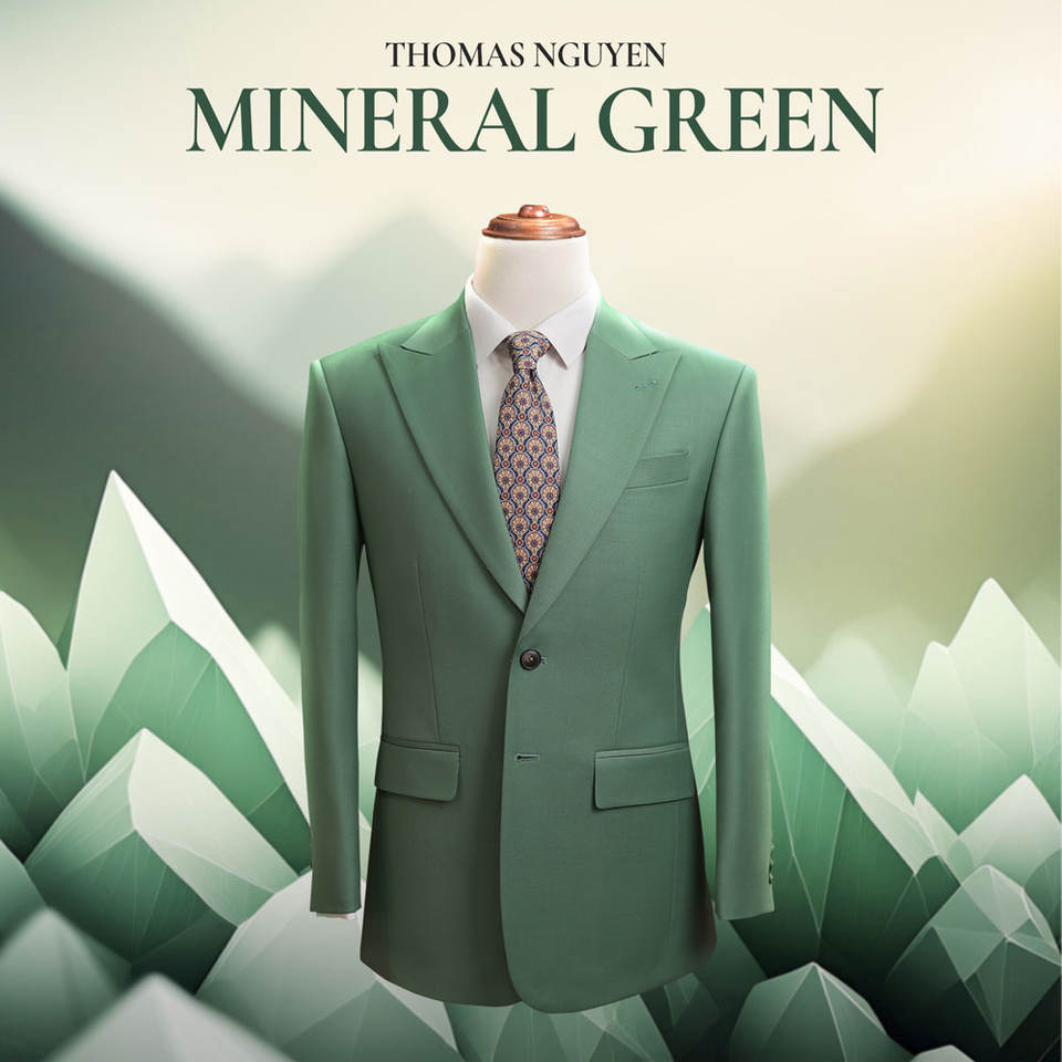 Men's Business suit's two-piece suit Tailored Mineral Green Suit Jacket and Trousers Natural Color Collection Made in Vietnam