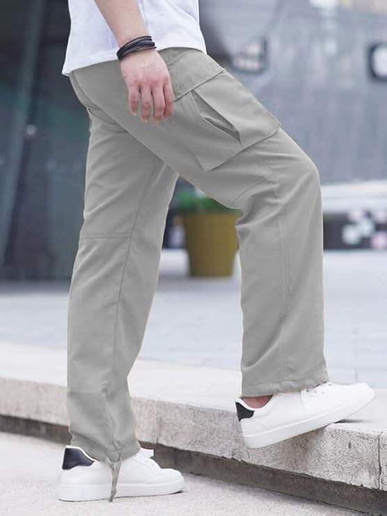 Men's Cargo Pants Drawstring Casual Hiking Pants Joggers Athletic Trousers Cotton Loose Straight Sweatpants for Men