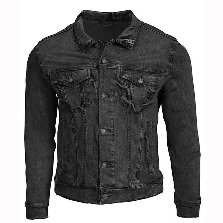 Men's Casual 100% Cotton Denim Jacket Turn Down Collar Solid Color Button Winter Outerwear Lightweight Coats Male