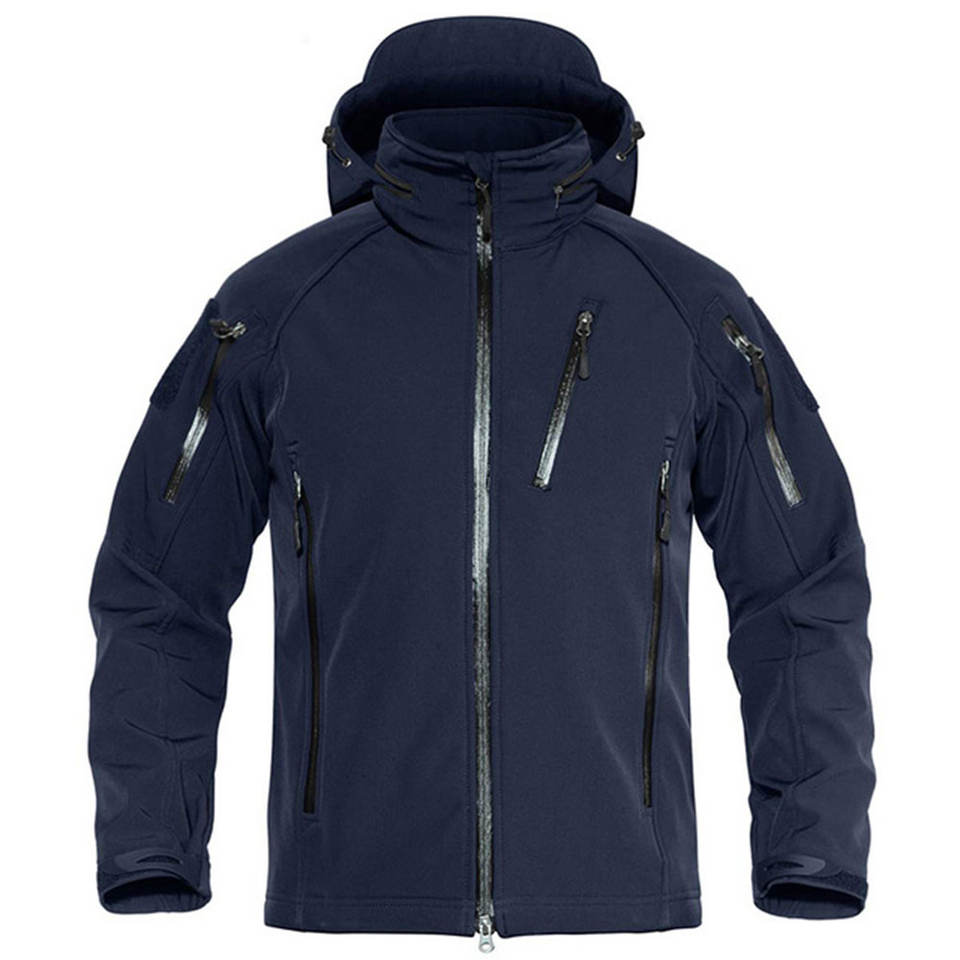 Men's Casual Autumn Denim Jacket Waterproof 100% Cotton Woven Fleece Windbreaker Stand Collar Windproof Hood Light Zipper Front