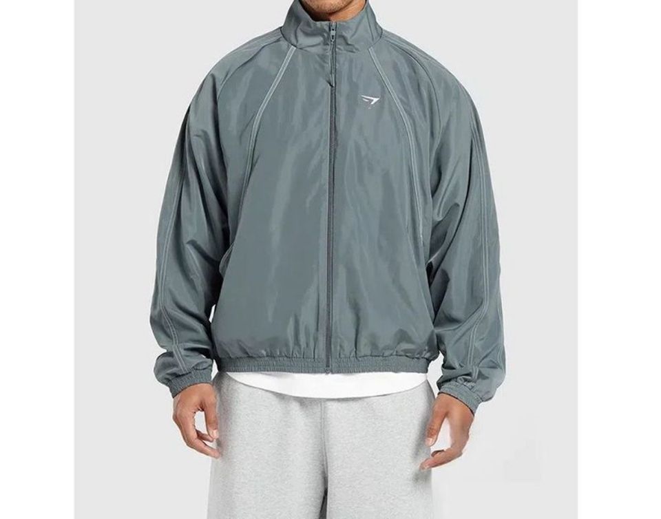 Men's Casual Autumn Oversized Print Zip-Up Bomber Jacket Custom Stand Collar Loose Fit Front Logo Windproof & Waterproof
