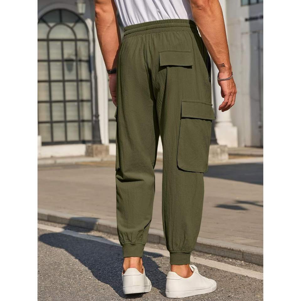 Men's Casual Baggy Cotton Joggers Pants Tapered Sweatpants with Multi-Pocket Cargo Hippie Loose Fit Trousers for Gymnastics