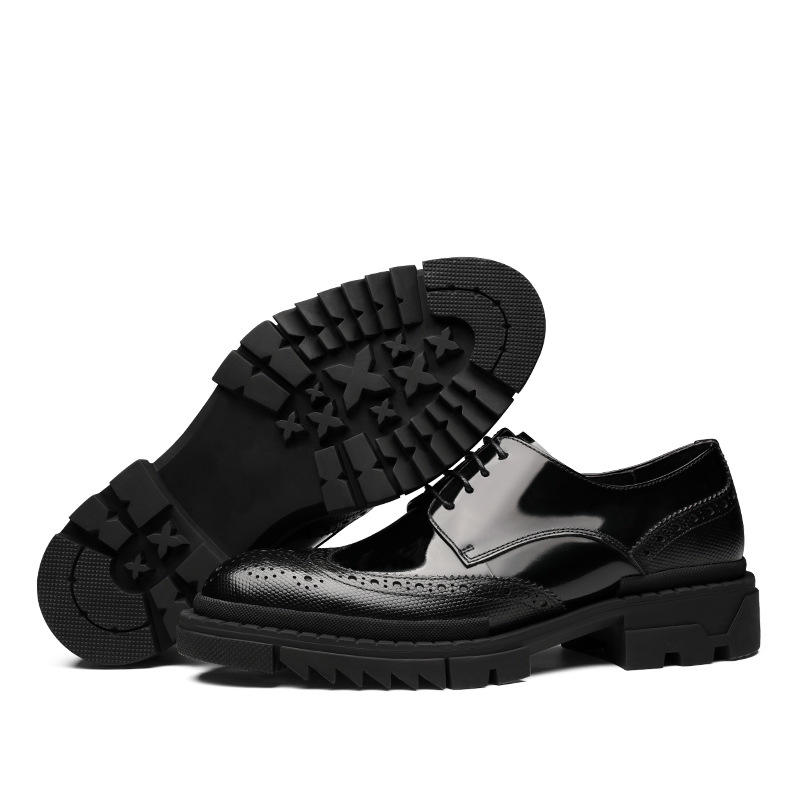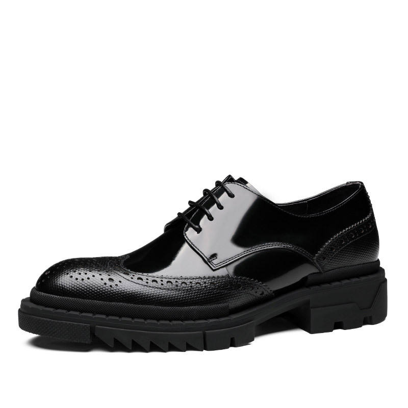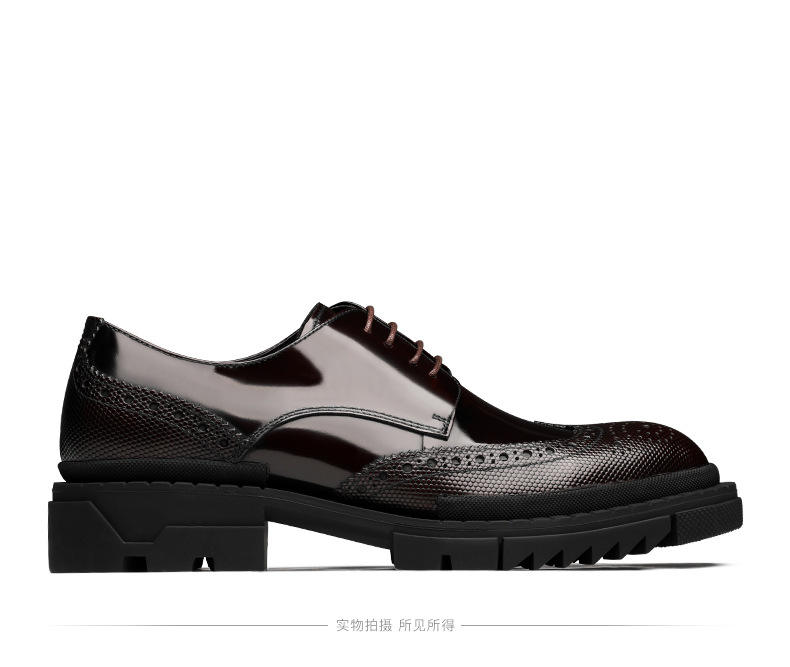 Men's Casual Business Leather Shoes - Lock Engraved Lace-up Patent Leather Upper Waterproof and Wear-resistant Shoes