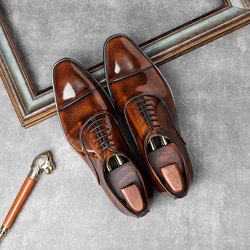 Men's Casual Business Shoes Genuine Leather Soft Flat Formal Pointed Toe Breathable Hook Loop Closure Fashionable Lightweight