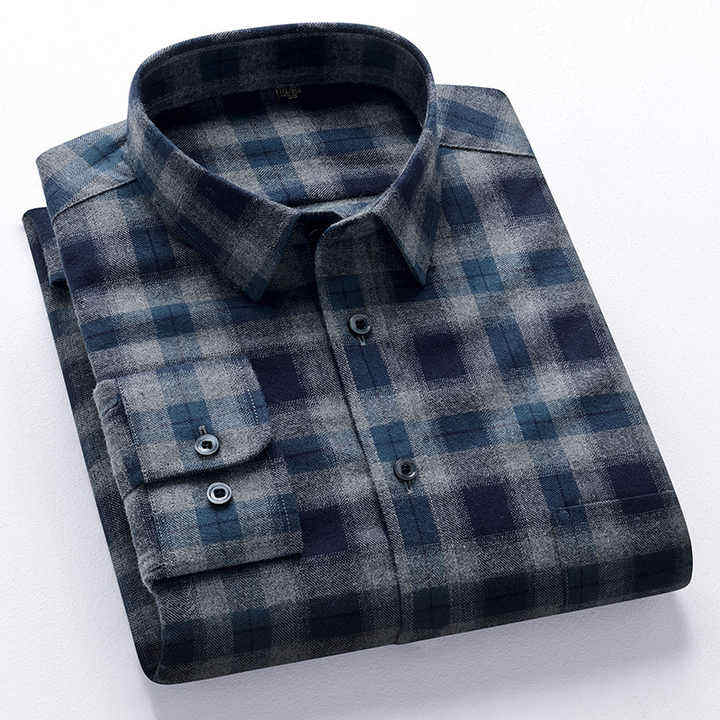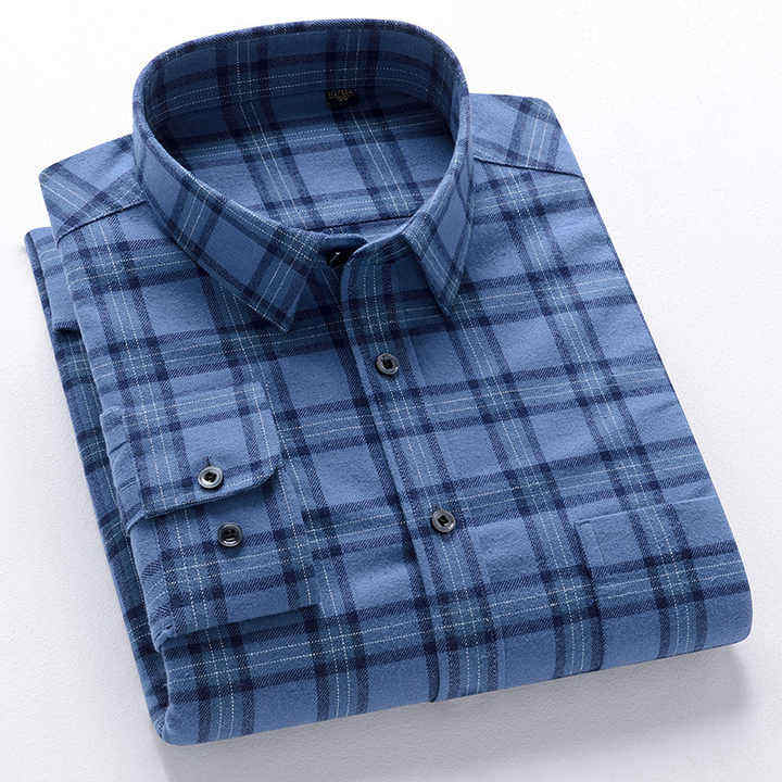 Men's Casual Button down Checked Flannel Shirts Breathable Floral Pattern Stand Collar Anti-Wrinkle Branded Shirts