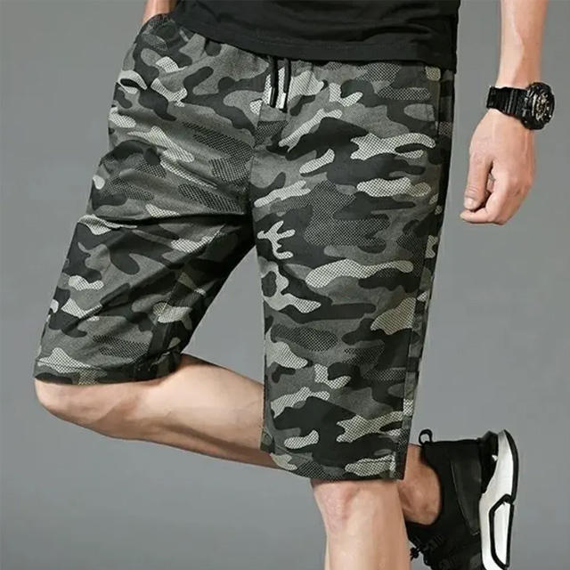 Men's Casual Camo Print Cargo Shorts Loose Fit Polyester Waterproof Jogger Button Decoration Beach Pants Training Eco-Friendly