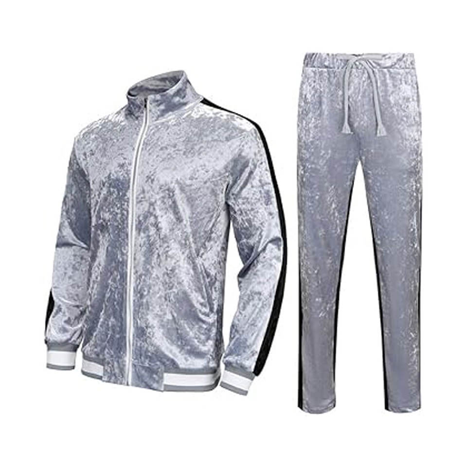 Men's Casual Eco-Friendly Winter Printed Velour Full Track Suit with Long Sleeve Top Elastic Waist Underpants