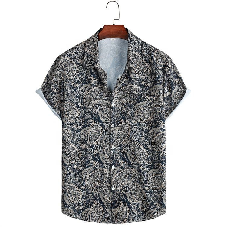 Men's Casual Fit Non Ironing Short Sleeve V-neck Logo Custom Eco-Friendly Canvas Summer Cool Button Hawaiian Shirts Custom
