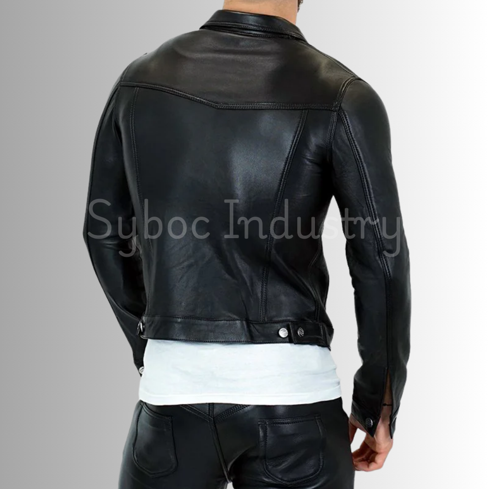 Casual Office Jacket for Men High Quality Real Black Napa Leather Classic College Style Leather Tucker jacket
