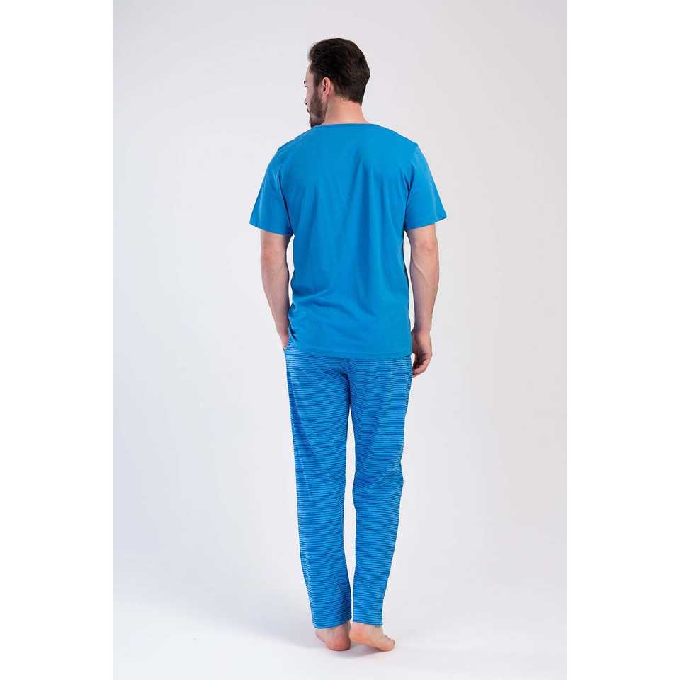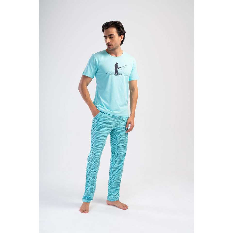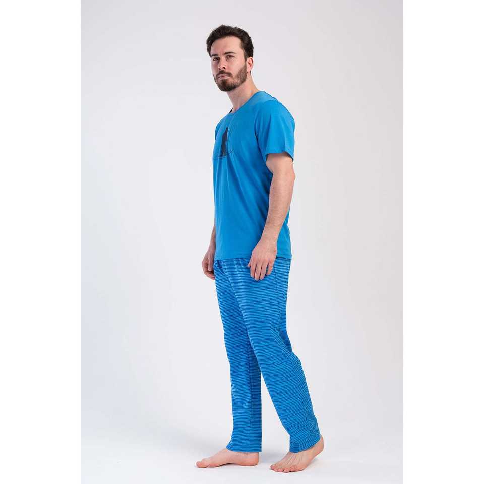 Men's Casual Home Wear Crew Neck Short-Sleeve Pajama Set with Pockets Silk Cotton Fabric Custom Logo Thermal Print Pattern