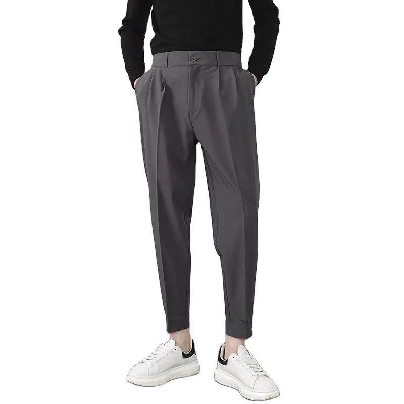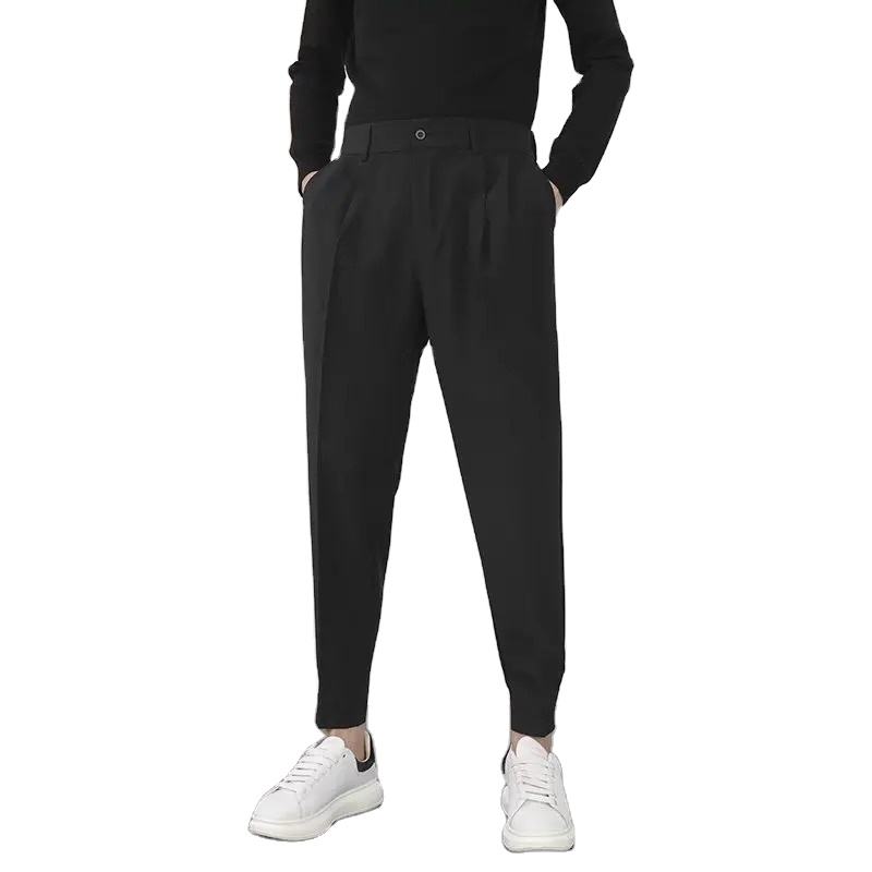 Men's Casual Korean Style Blazer Pants Elastic Waist Slim Pleated Tapered Trousers with Flat Front OEM Service Available