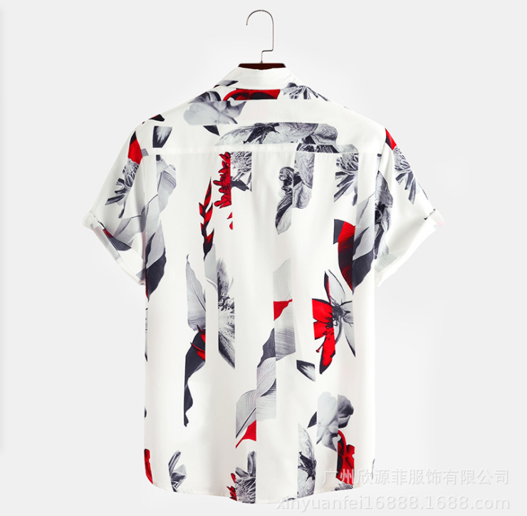 Men's Casual Lapel Short-Sleeved Plus-Size Ink Painting Print Shirt Men's Hawaiian Beach Fashion men's shirts