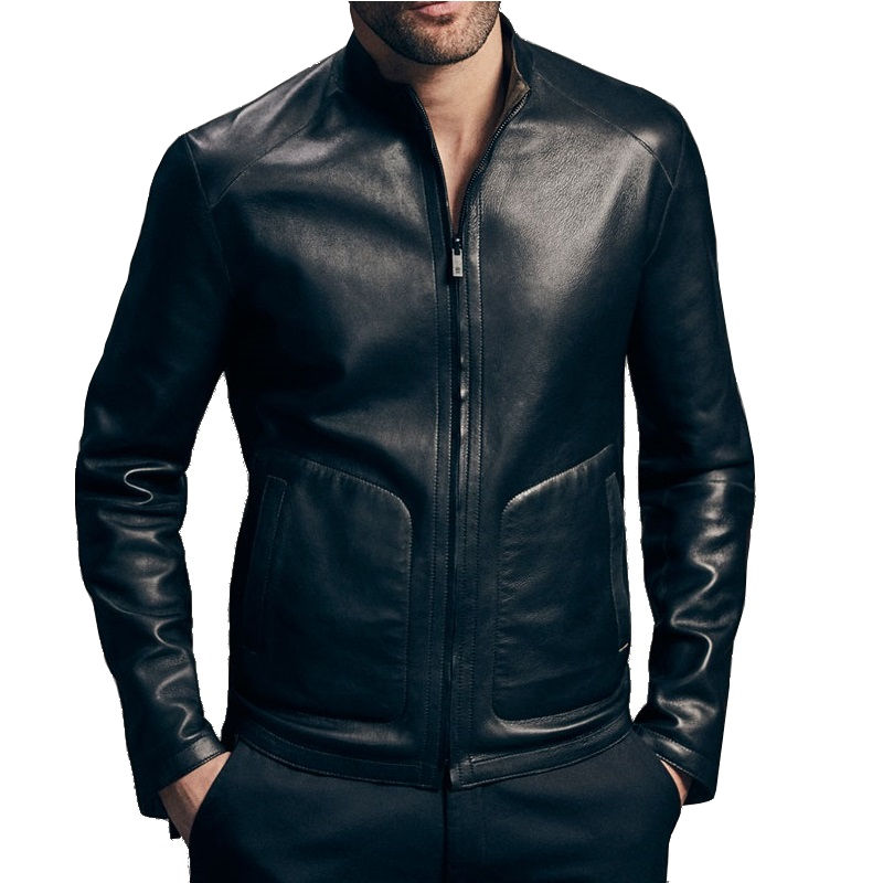 Men's Casual Leather Jacket Single Locomotive Collar Thin Short Stand Zipper Closure-Cooling Functional Men jacket for men