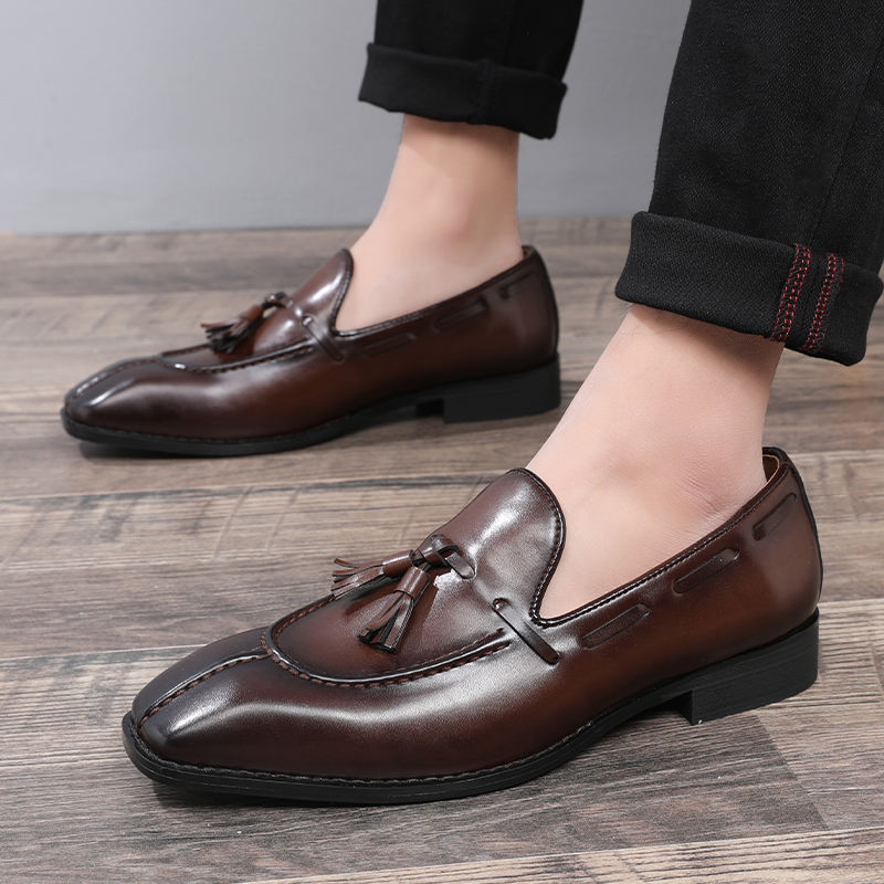 Men's Casual Leather Shoes Men's British Slip-on Pointed Trendy Penny Loafer Casual Flat Dress Shoes for Men