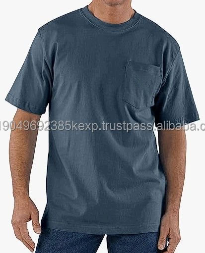 Men's Casual Long Length Short Sleeve T-Shirt Loose Fit Heavyweight 100% Cotton Blank Design with Pocket Knitted Fabric