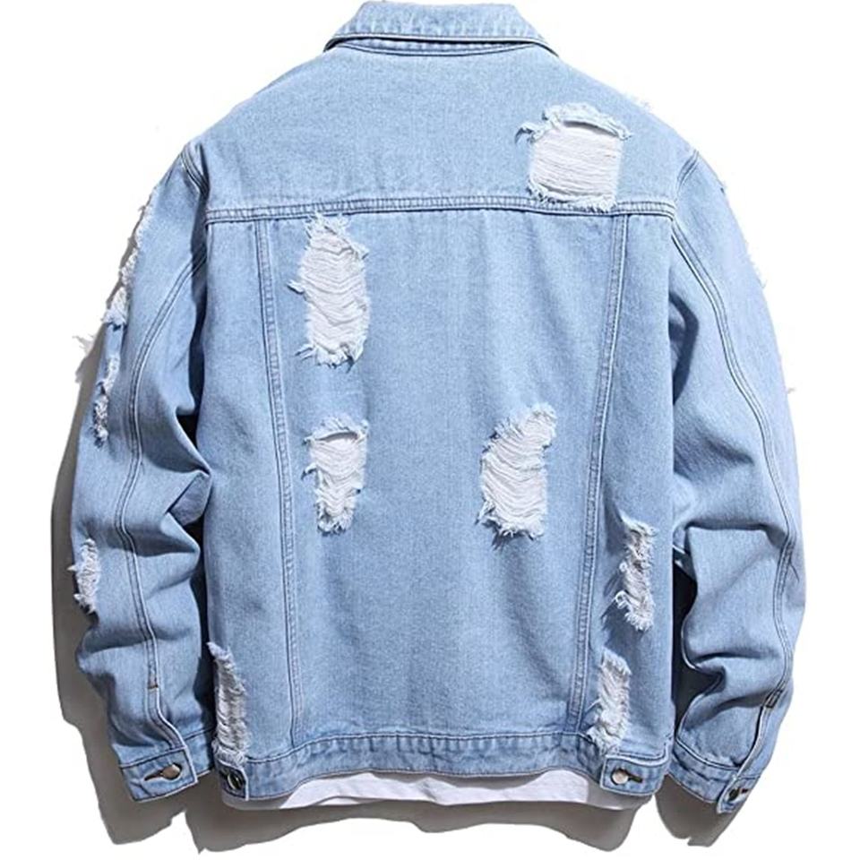 Men's Casual Long Sleeve Button Denim Trucker Jacket Biker Jean Coat Outwear