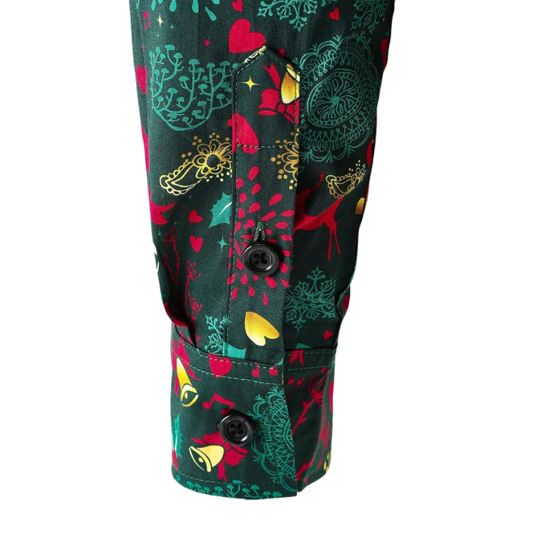 Men's Casual Long Sleeve Button Down Dress Shirt Shiny Black Floral Print Christmas Shirt Business Casual Tops for Men